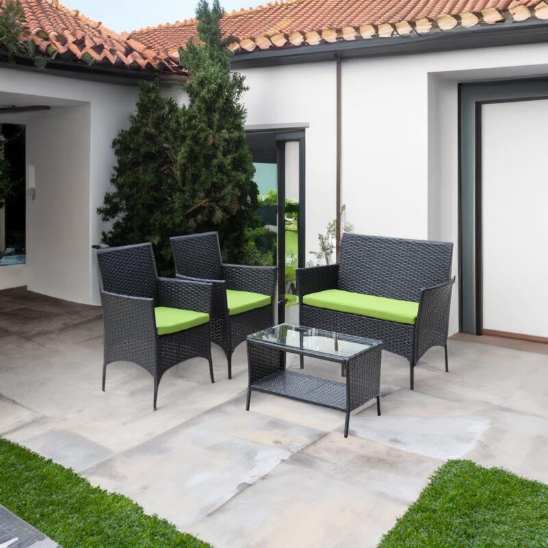 Patio Seasonal Outdoor Wicker Furniture Set with Black Metal Table