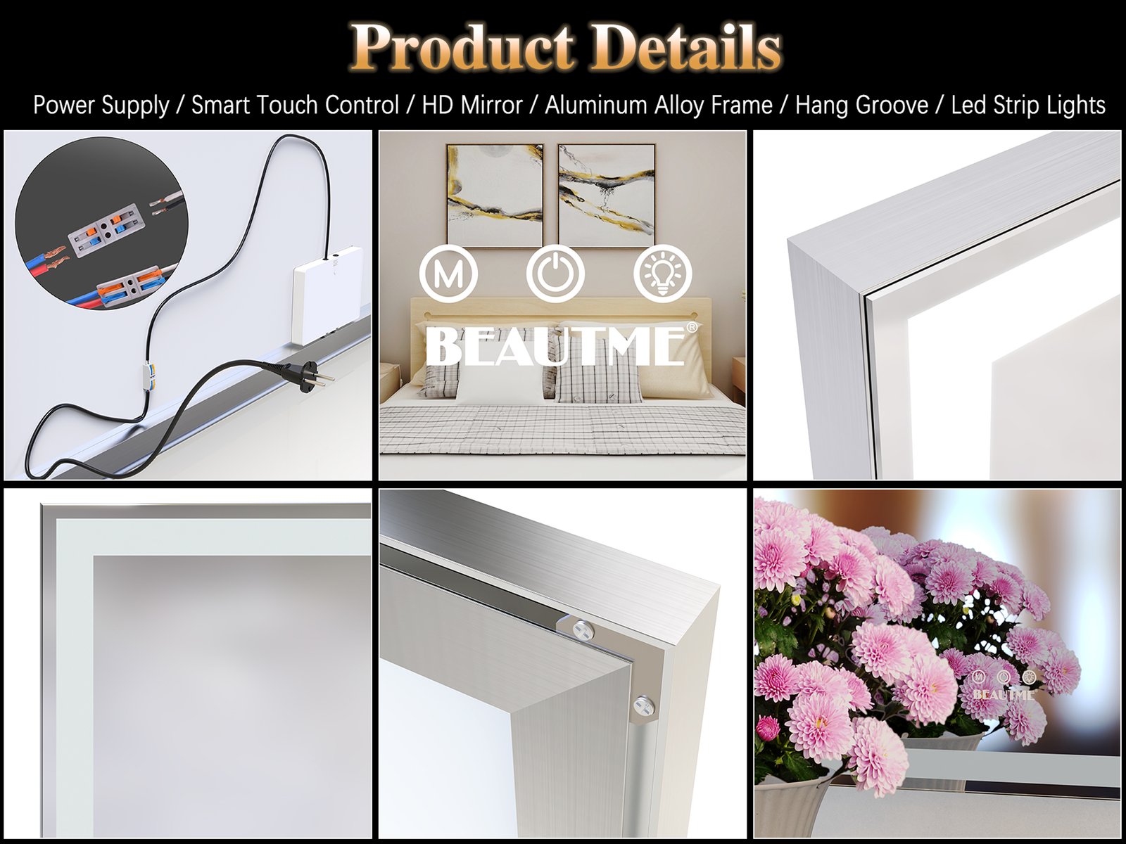 - Waterproof, Safe and Durable: IP44 waterproof grade, safe and durable to use. The five-layer protection on the back of the LED mirror for bathroom is more secure and can ensure that the components of the bathroom mirror are not damaged during use. The waterproof LED strip has a leak-proof function and is safer to use.