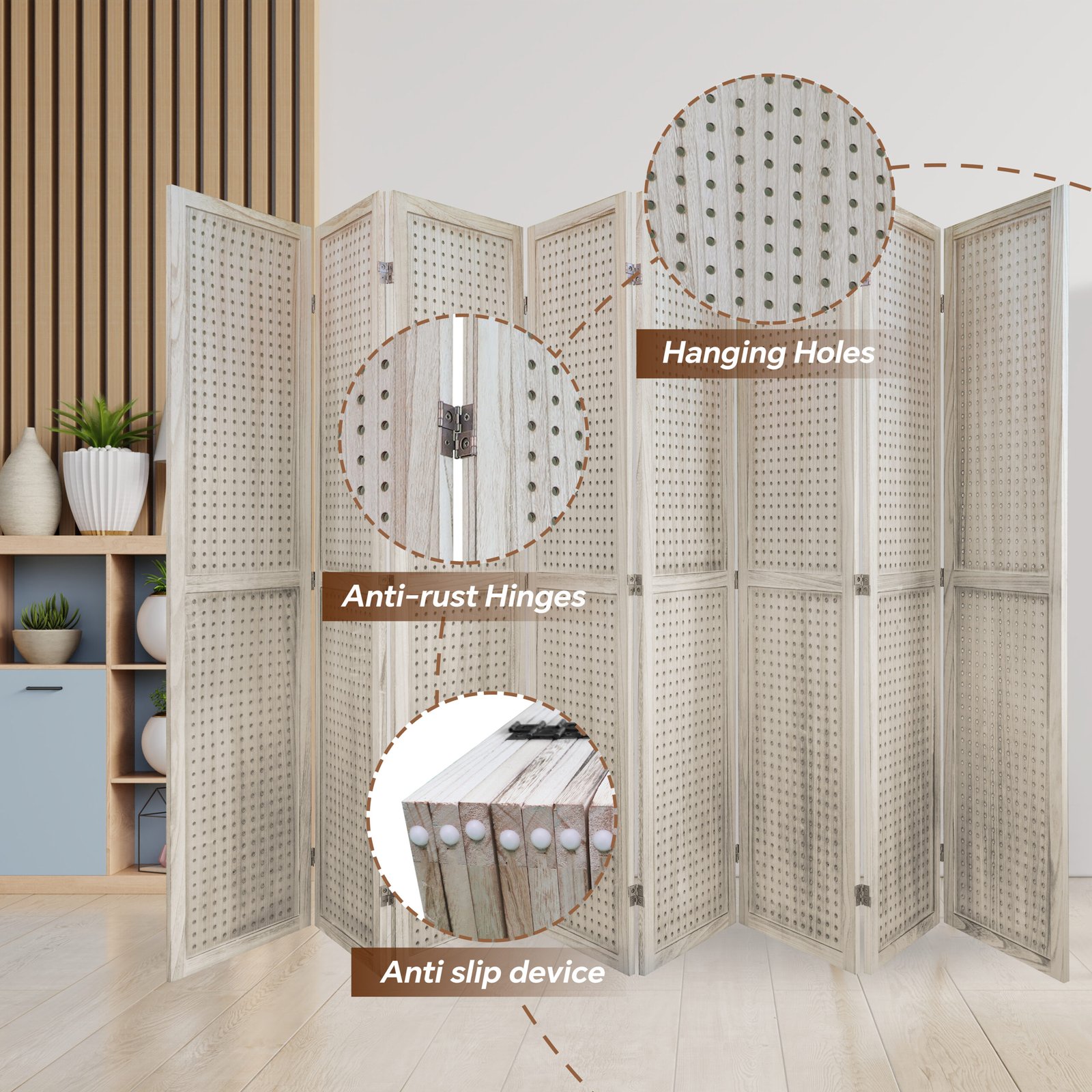 • 【High Quality Material】The portable partition screen is made of natural wood, which is comfortable and breathable, environmentally friendly and practical, and has the advantages of not easy to deform, and wear-resistant for many years. The pegboard display panel can form a wall, providing flexibility and functional support for daily use