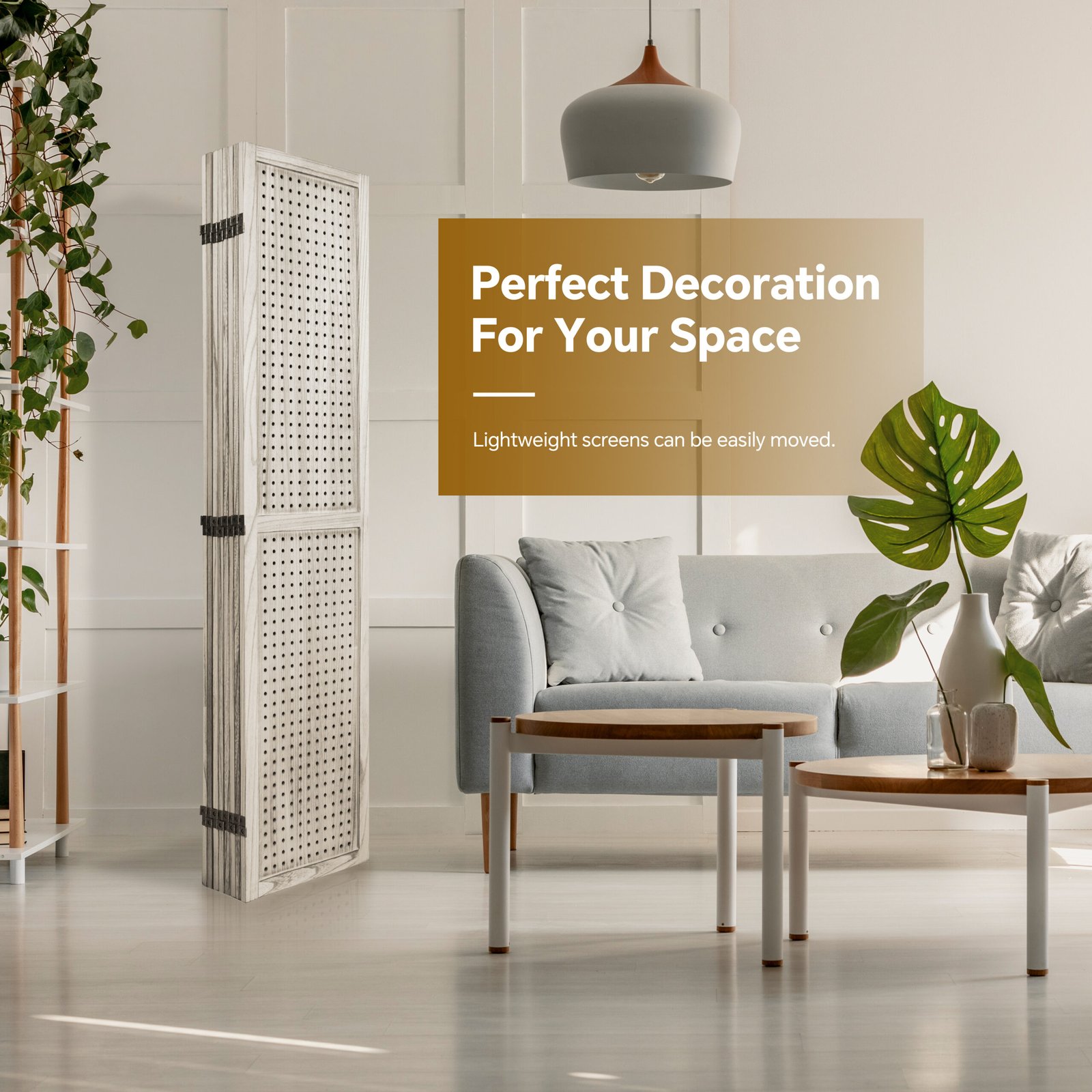 • 【Pegboard Panel Display Design】The holes on our pegboard panel display are 0.3 inch in diameter with 1 inch spacing, which fits many types of peg hooks. This pegboard room divider not only can be used as a room divider folding privacy screen for home decor or wall organizer, but can be a freestanding display panel for hanging items in trade shows, craft shows, flea markets, department stores, etc
