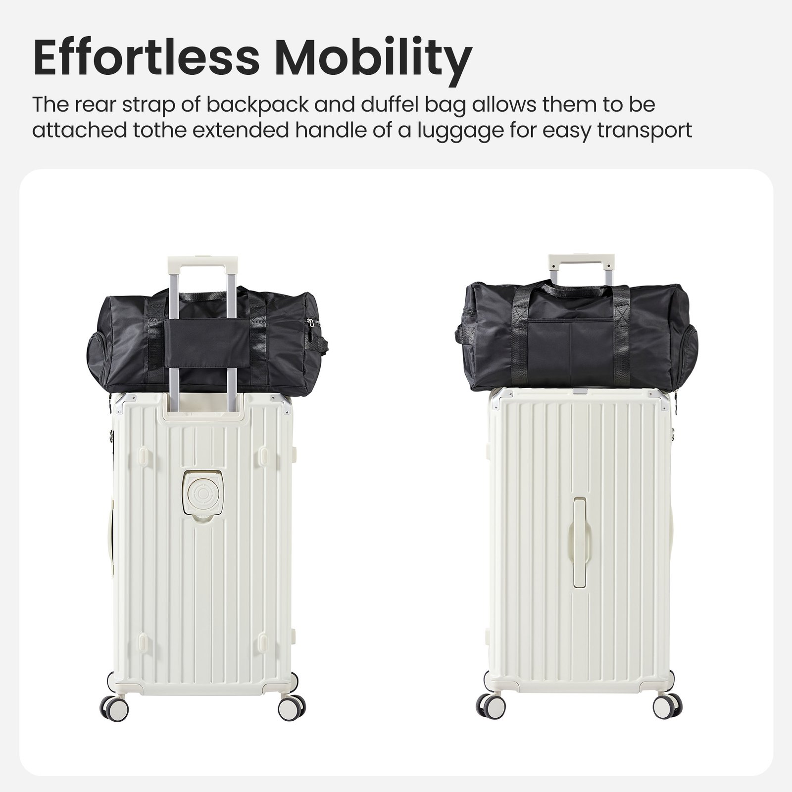 - The back of the suitcase is equipped with a foldable cup holder, and the travel bag can be nested with the trolley bar, which can free up your hands and is also convenient for storage, and the suitcase has multiple assistive handles to make your journey easy and enjoyable.