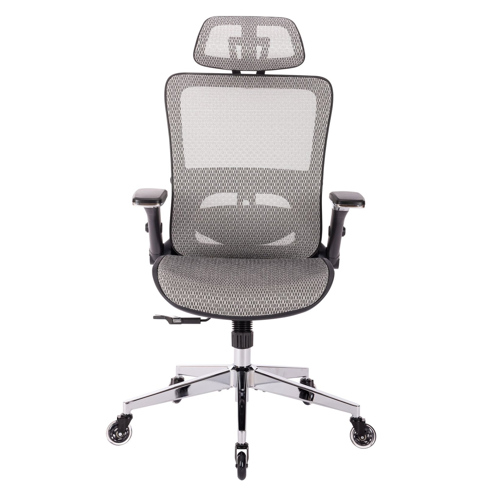 Product Name:GREY Ergonomic Mesh Office Chair, High Back – Adjustable Headrest with Flip-Up Arms, Tilt and lock Function, Lumbar Support and blade Wheels, KD chrome metal legs