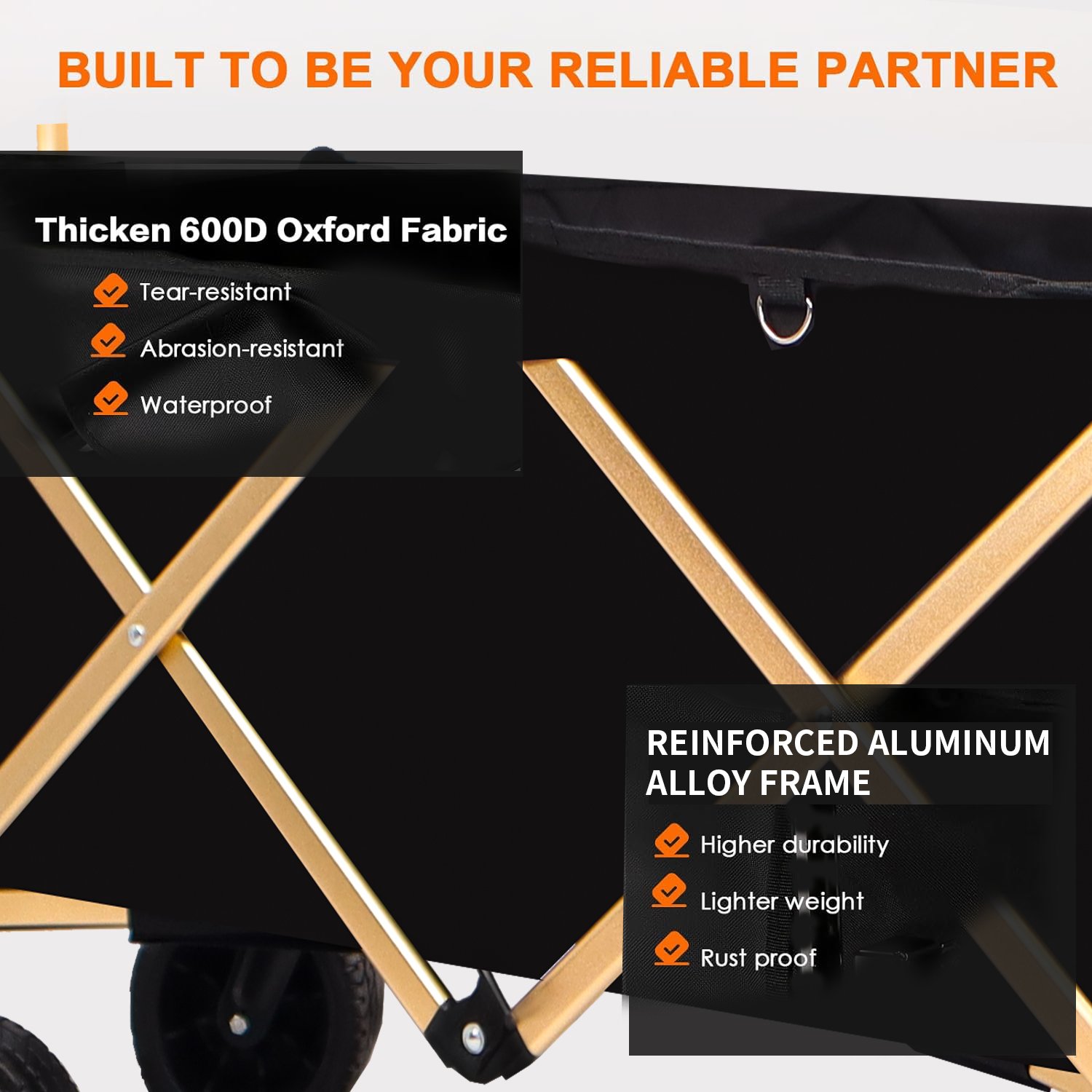 • Solid And Durable Wagon Cart: This collapsible wagon is made of strong steel frame and 600D Oxford fabric, which can ensure extra weight capacity and could transport up to 200Lbs, meanwhile the thickened oxford fabric provides maximum tear resistance. An extra COVER is included to protect your grocery cart from dust and moisture