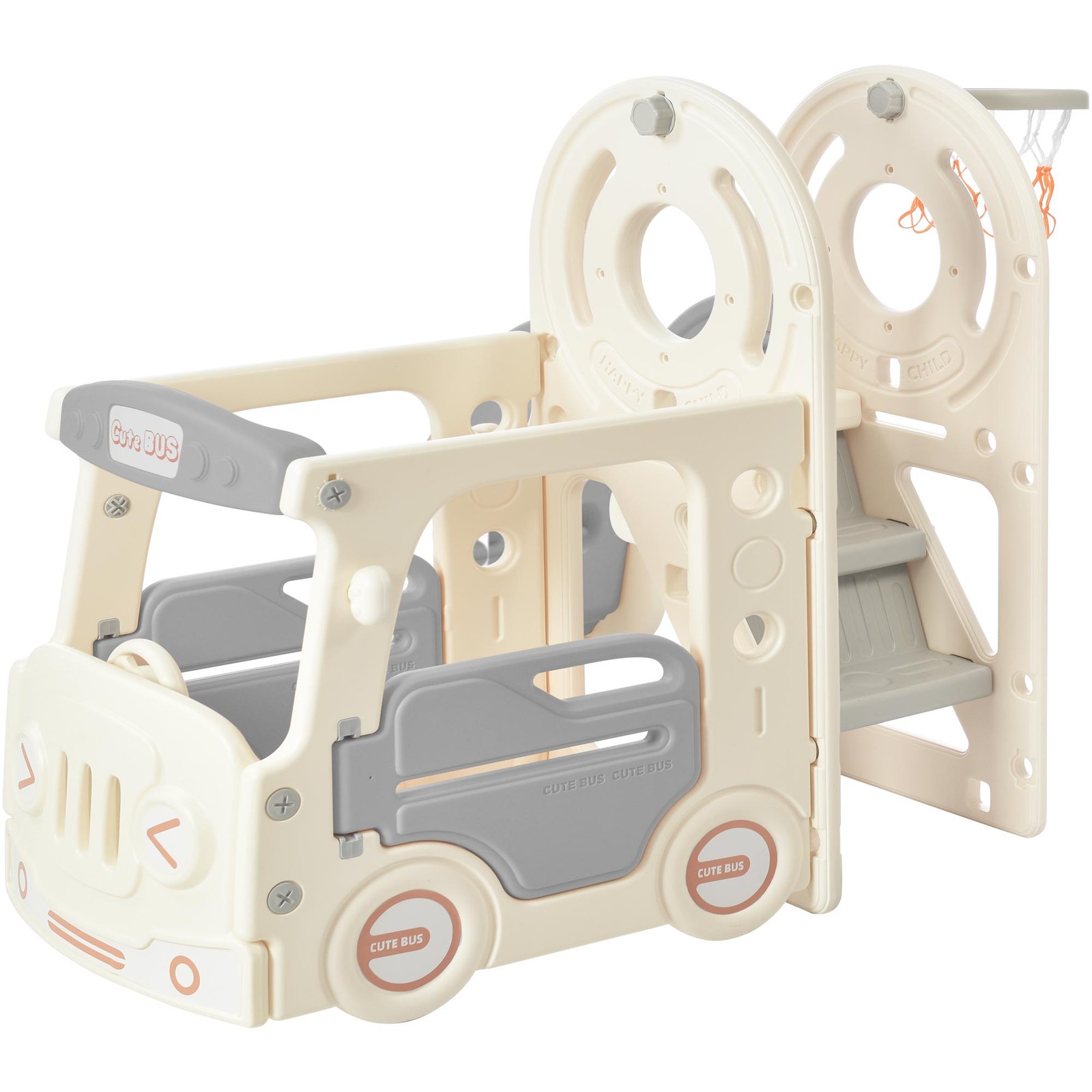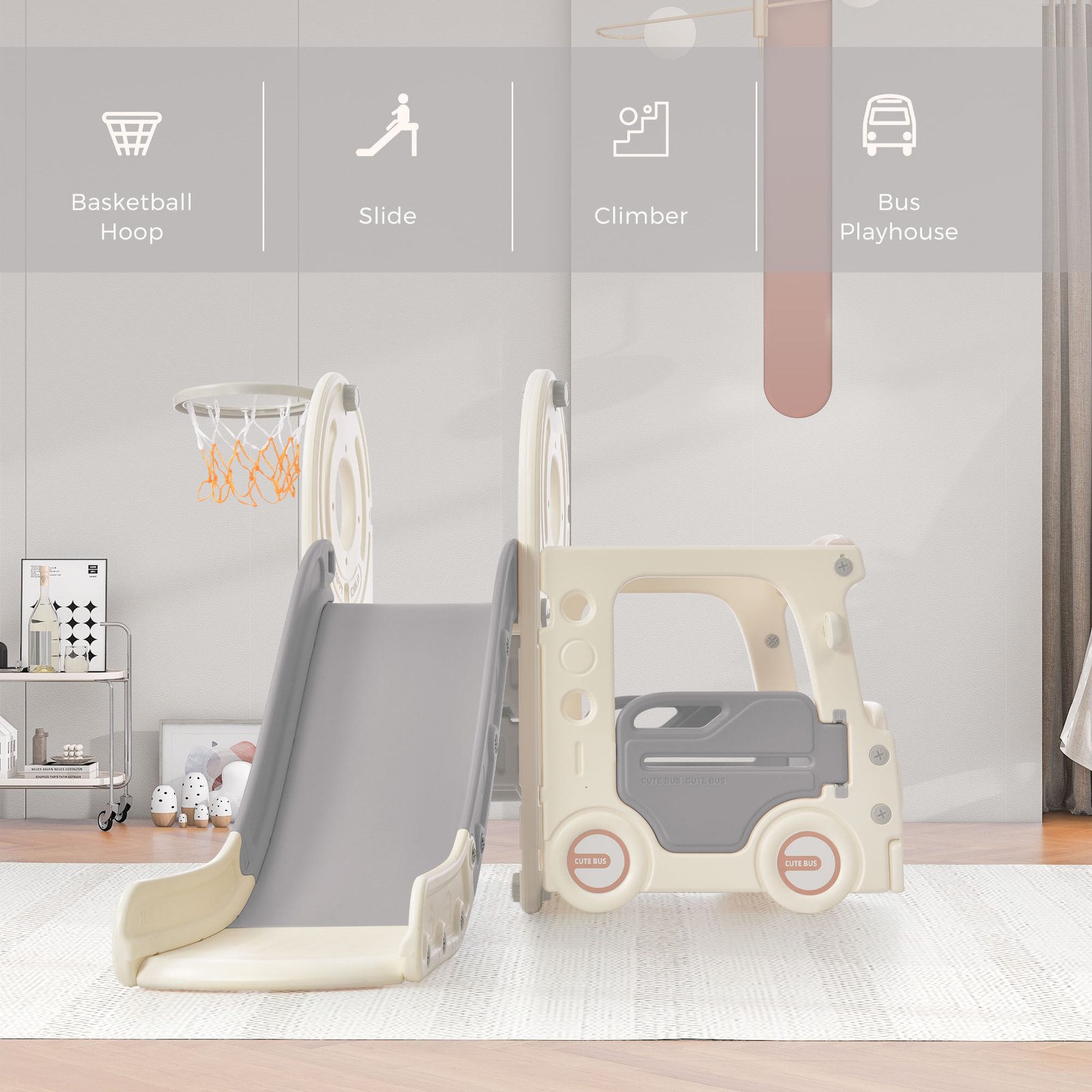 Kids Slide with Bus Play Structure and Basketball Hoop for Toddlers
