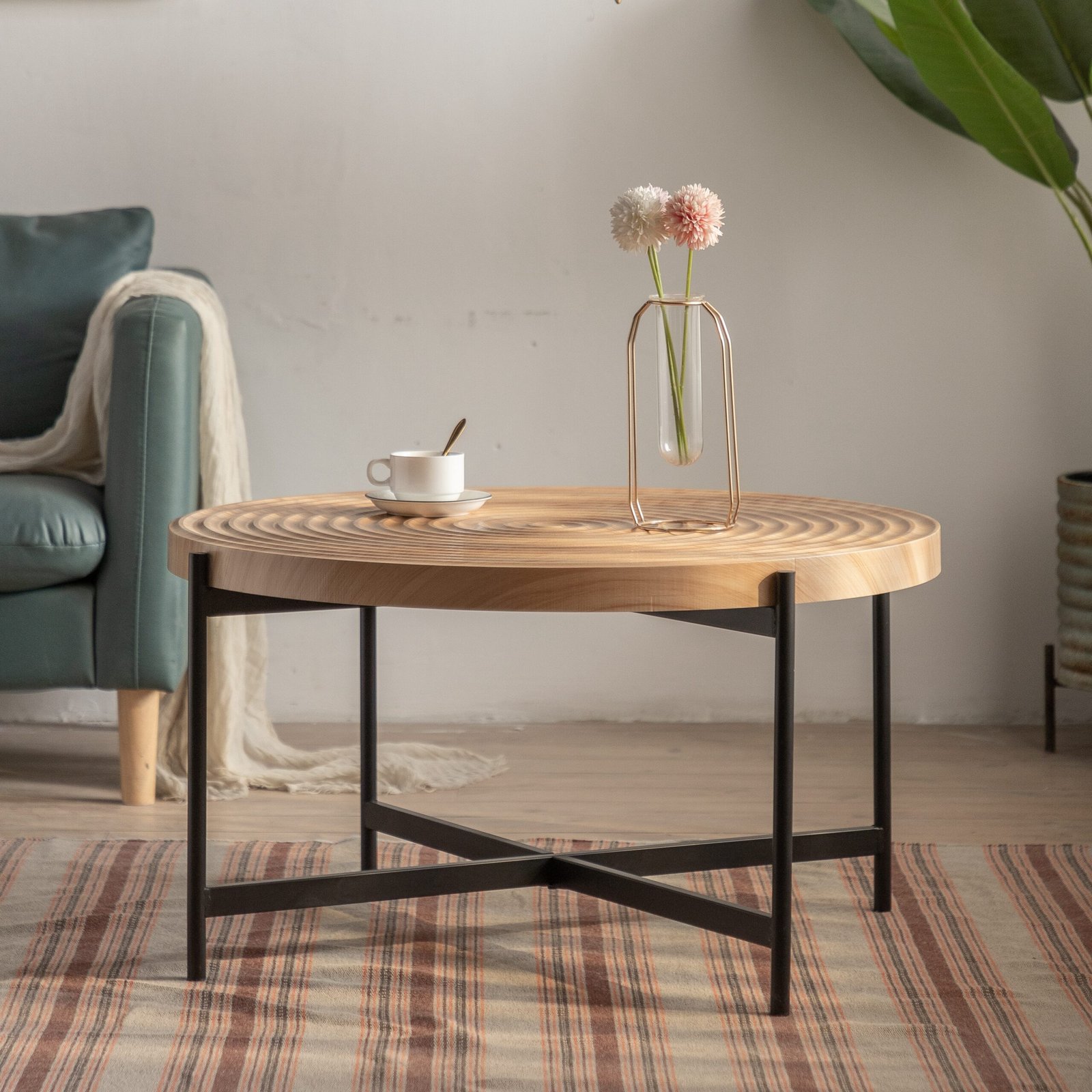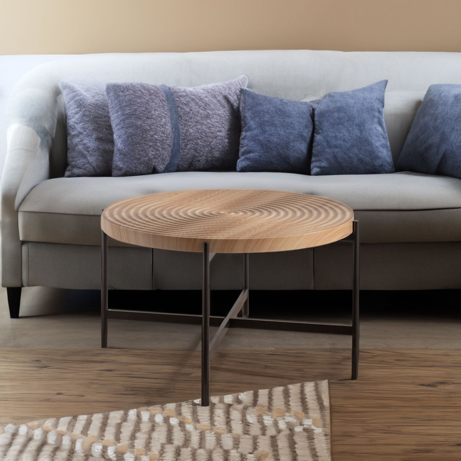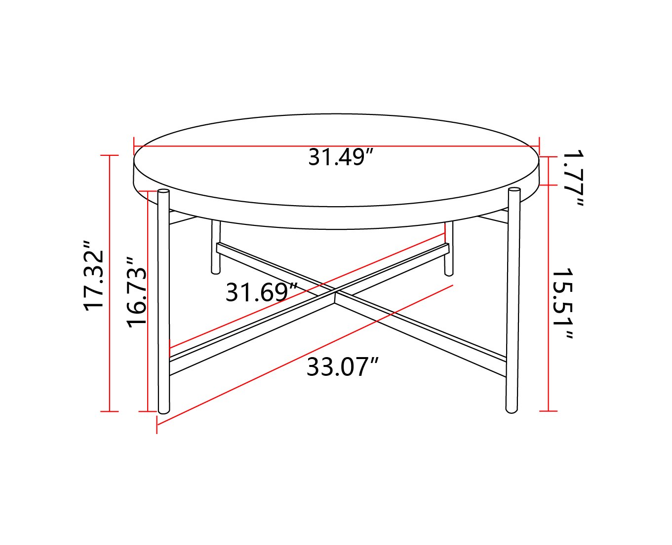 Product Name:33″Modern Thread Design Round Coffee Table , MDF Table Top with Cross Legs Metal Base