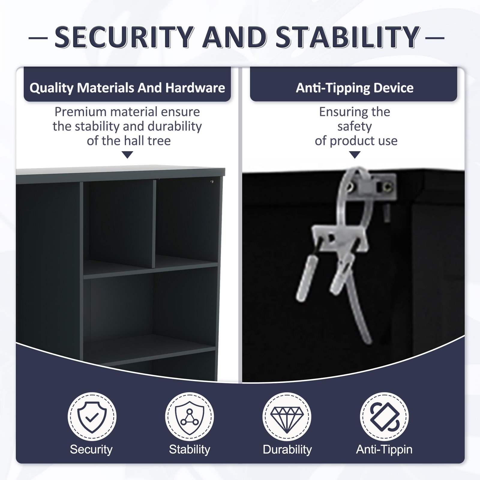 • Stable and durable: Made of MDF and particleboard, this hall tree comes with quality hardware to ensure long-lasting use. In addition, the hall tree is equipped with an anti-tipping device to ensure safety.